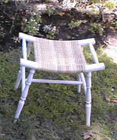 Small white bench/seat with basket weave binders cane. Good condition. $75.00